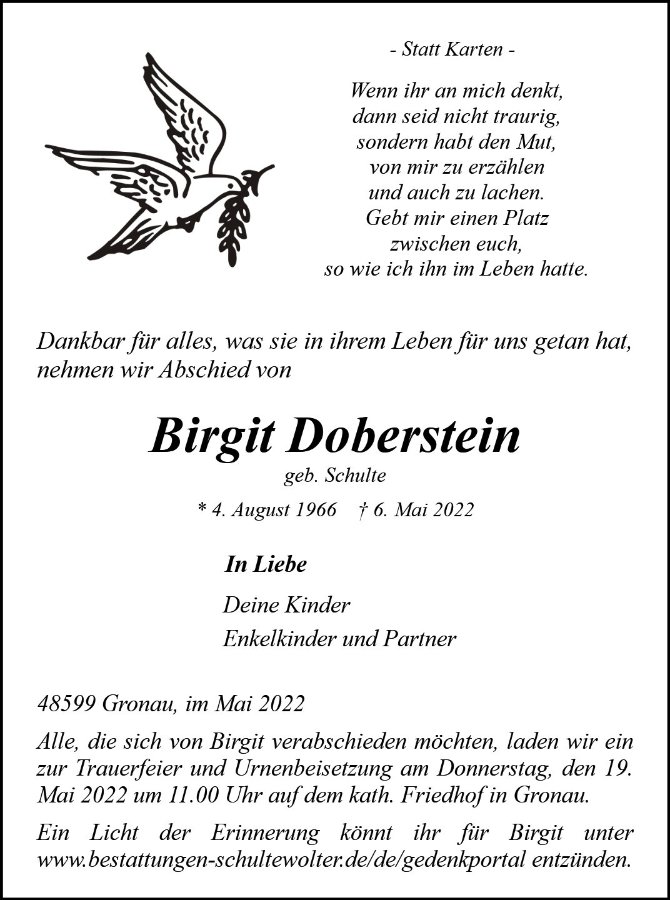 Birgit Dobersteingestorben am 6. Mai 2022